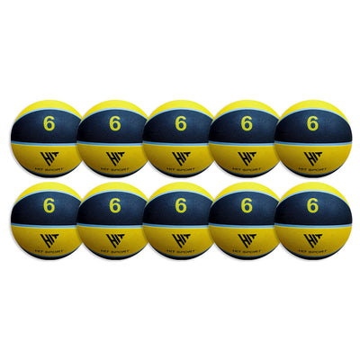 The Hit Sport Trainer Yellow Basketball | Size 6 is perfect for players looking to develop their skills. Designed for boys aged 12-14 and is the official size for professional women's basketball, this ball offers excellent control and durability, making it ideal for training, drills, or casual play. Its versatile design allows it to perform well on both indoor and outdoor courts.