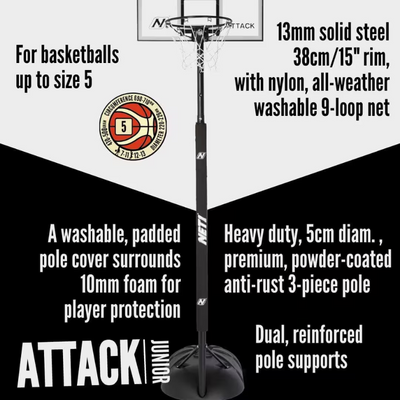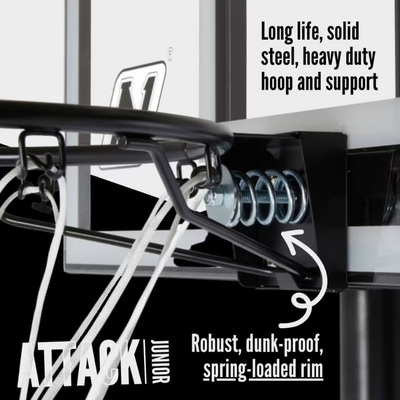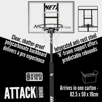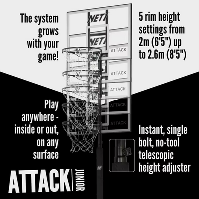 The NET1 Attack Junior Portable Basketball System is the perfect choice for young basketball enthusiasts looking to play and practice anywhere — whether it’s the backyard, driveway, or school playground. Designed in the UK, this system delivers a pro-level experience in a youth-friendly size and build.
