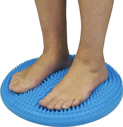 The double-sided stability cushion has one smooth side and a raised pattern on the other, which gives a massage and sensory workout. Excellent for improving balance, coordination, physical instability, fatigue and pain. Inflate to the desired level with the included pump.