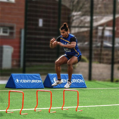 Hurdles are a major player when it comes to speed training. Hurdle drills reinforce balance, stability, correct posture, body awareness and a range of motion. Using these Large Adjustable Hurdles can improve your stride length and lower body power so you'll increase acceleration and top speed