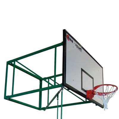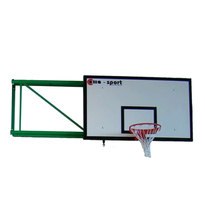 Side-folded wall-mount construction with 0.6 - 1.25m projection, adjusted to suit both fully-dimensional backboards (105 x 180 cm) as well as mini backboards (90 x 120 cm).