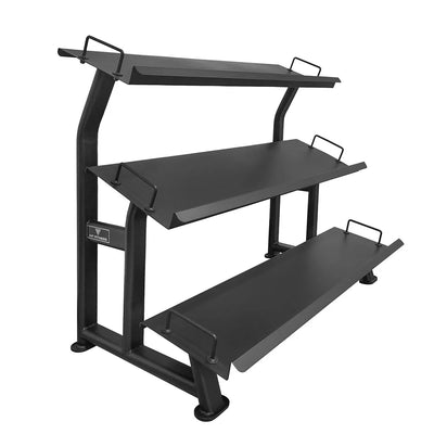 The Hit Fitness Premium Dumbbell 3-Tier Rack is a high-quality gym equipment that can hold 10-16 pairs of dumbbells (depends on size/weight of dumbbell) within its compact structure. This storage rack features three tiers made of resistant steel that are inclined for easy access to the dumbbells.