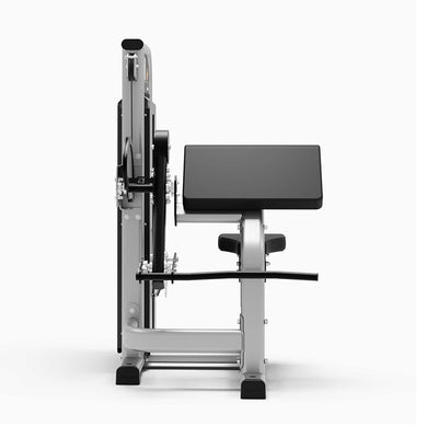 The Exigo Bicep Curl is one of the most efficient ways of isolating the biceps. It pivots at the elbow joint for an anatomically truthful motion, and the pivoting handle allows for natural hand positioning with less strain on the wrists. 5kg incremental weights allow precise resistance increases and numerous load options. This machine is made with 100x50x3mm Flat Sided Oval and is fully commercial with a lifetime warranty on the main frame.