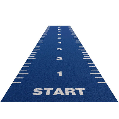 The Trackz Lined Turf Essential Range | Blue comes with tufted line markings, start and numbers. The markings are not painted or laid in. These are machine-tufted white fibers which are the best option for keeping your track in fantastic shape. The markings are in white and the base colour can be decided by you.