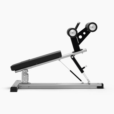 This Exigo Adjustable Decline Bench is perfect for use with free weights and is a must for any gym. This bench comes complete with high density foam padded rollers for leg support and a tapered seat pad for hip support. This training station is made with 100x50x3mm Flat Sided Oval and is fully commercial with a lifetime warranty on the main.