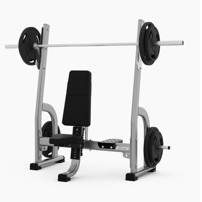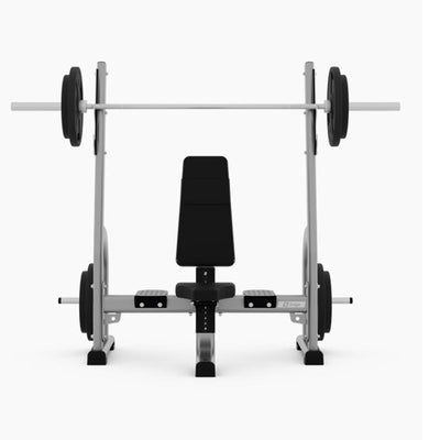 The Exigo Olympic Shoulder Press provides the optimal set up for shoulder pressing with an Olympic bar. This station is complete with a stainless steel two position bar catcher, an adjustable seat and a platform for a spotter. Optional chrome storage horns with high impact ends are also available to provide storage for weight plates. This training station is made with 100x50x3mm Flat Sided Oval and is fully commercial with a lifetime warranty on the main frame.