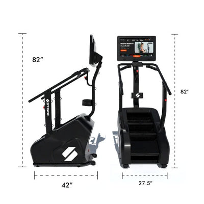 The Stepr Home Stairmill Climber (27" Console) is your ultimate Home Stair Climbing Solution. The space-saving design and compact footprint allow the STEPR to fit into most indoor environments. STEPR fits through standard doorways and only requires regular 8ft ceilings.