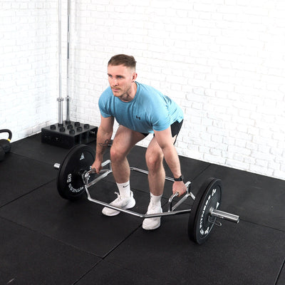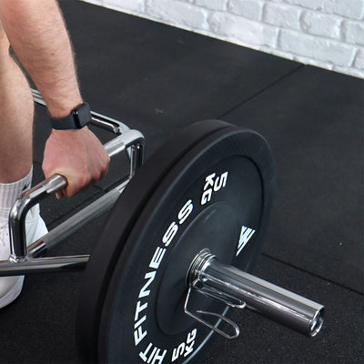 The Deadlift Weight Set & Hex Trap Bar bundle features a high grade electroplated hex bar suitable for performing deadlifts.