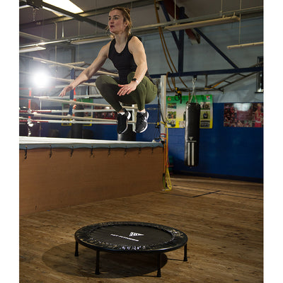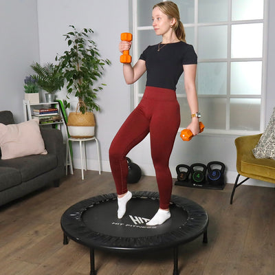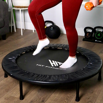 The HIT Fitness mini trampoline is an extremely effective exercise tool. Jumping on a mini trampoline creates a gravitational pull on the body which increases an individuals exercise weight by 3.24 times their regular weight.