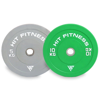 The Hit Fitness 5kg & 10kg Coloured Bumper Plates | Bundle is an essential addition to your strength training routine, designed for both home and commercial gym use. Crafted from high-quality rubber, these bumper plates offers durability and resilience, ensuring it can withstand the rigours of heavy lifting. The vibrant colour coding not only enhances aesthetics but also allows for easy weight identification during workouts. Perfect for Olympic lifts and functional training, this plate ensures safe landings with minimal bounce, making it ideal for users of all fitness levels.