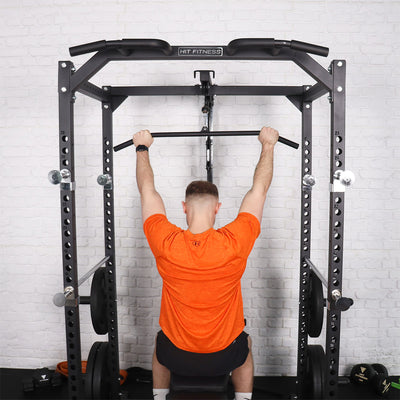 The Hit Fitness F100 Pro Power Rack and F100 Pro Lat Pull & Low Pulley Row Attachment is a versatile combination designed to maximise your workout potential. Perfect for fitness enthusiasts and serious lifters alike, this dynamic duo transforms your power rack into a multifunctional weight machine, enabling a wide variety of exercises to target every major muscle group. From lat pulldowns and cable rows to triceps extensions and biceps curls, this setup ensures an engaging and comprehensive training experience.