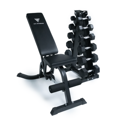 The Hit Fitness Home Gym Starter Set (105kg) is a compact strength training package designed for users who want to build a simple and effective workout setup at home. It combines a vertical dumbbell rack with six pairs of hex dumbbells and your choice of a home or deluxe weight bench, offering a balanced foundation for full-body training.