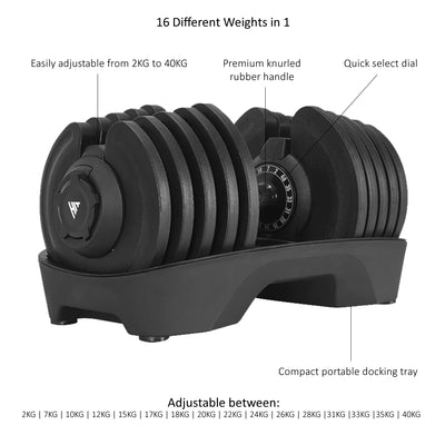 Adjust each dumbbell from 2kg to 40kg, suitable for beginners and experienced lifters. -
