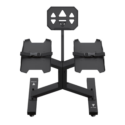 A strong steel stand designed to hold Hit Fitness adjustable dumbbells at an ergonomic lifting height. The angled trays and safety straps keep your dumbbells secure and easy to rack, helping maintain a tidy and efficient training area.