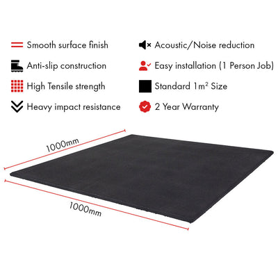 Hit Fitness Gym Flooring | 1m x 1m x 15mm | Black