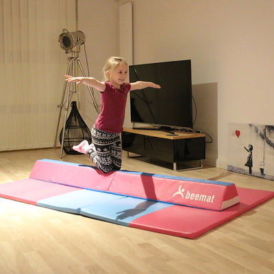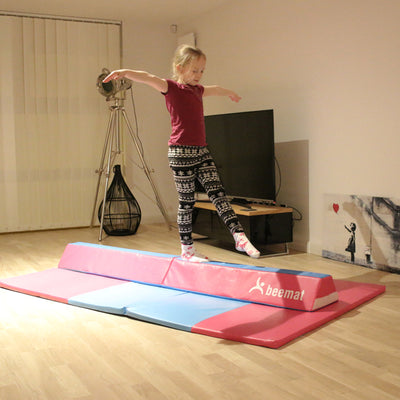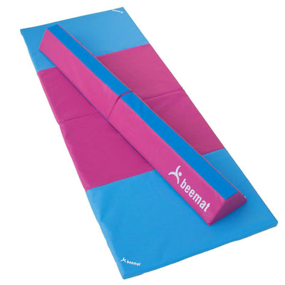 Save money with this combination pack of the popular Beemat folding balance beam and a twofold panel mat suitable for pre-school and home use. The Beam is used for balance and precision, skill repetition, enhancing progression, pre-school gymnastics, home gymnastics, jumps and leaps, balances, spins, forward rolls, cartwheels, backwards and forwards walkovers, flicks, somersaults.