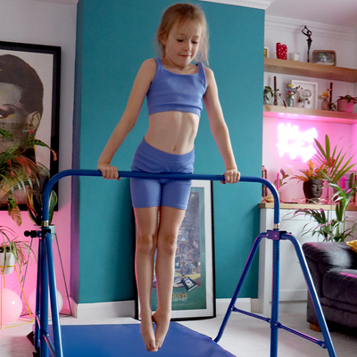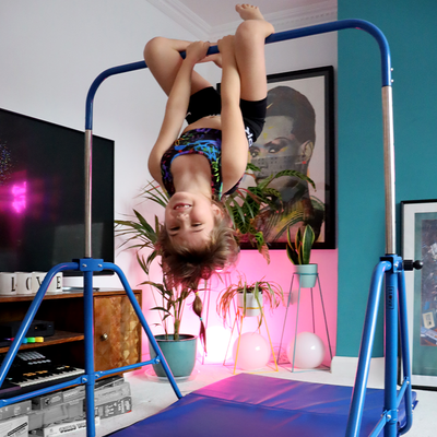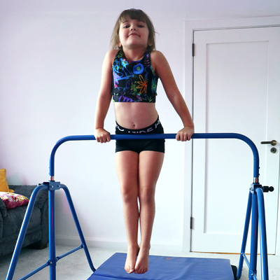 The ideal starter bar should prioritise stability, safety, and compact storage. The I Love Gymnastics Essential Bar & Mat Set features a triangular base for reduced sway, five height settings (90–131 cm) perfect for ages 3 – 9, protective rubber feet, and a fold-away design - giving families a sturdy, space-saving first bar setup.