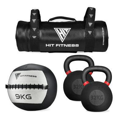 The Pro bundle is designed for experienced lifters or anyone who wants to push strength and power to a higher level. The 32kg kettlebells deliver significantly heavier loading for explosive swings, deadlifts, and strength complexes. The 30kg strength bag elevates your conditioning and carry work with a challenging weight suitable for advanced Hyrox training. The 9kg medicine ball adds intensity to rotational power drills, throws, and core exercises.