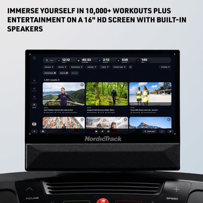 Train smarter with the NordicTrack T Series 16, designed to bring professional-level running experiences straight into your home. Featuring a 16” immersive HD touchscreen that pivots and tilts, you can easily transition between treadmill sessions and off-machine workouts guided by world-class iFIT trainers.