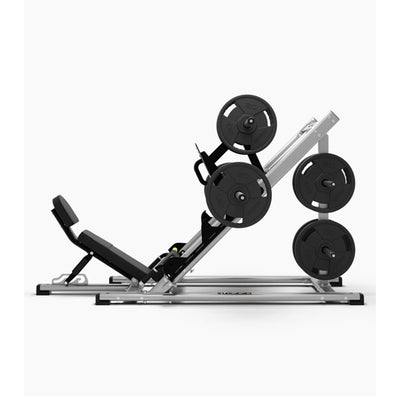 The Exigo Plate Loaded 45 Degree Leg Press effectively targets the quads and engages the glutes with a starting weight of 60kg and an additional max load of 640kg. This impressive leg station features premium 40mm linear bearings to ensure smooth operation as well as stainless steel anti slip footplates and a 3-position back pad for secure placement and comfort. 4 storage points are available for weight plates. This machine is made with 100x50x3mm Flat Sided Oval and is fully commercial with a lifetime warranty on the main frame.