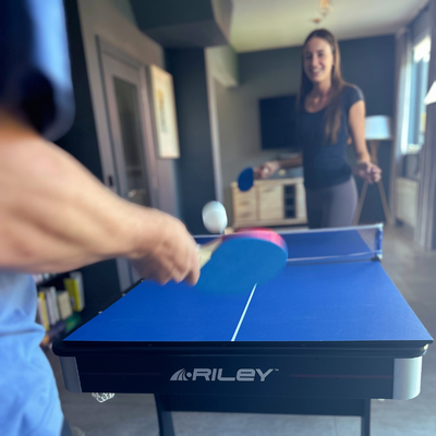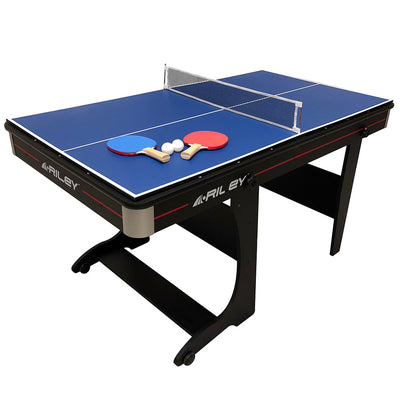 The Riley 5ft Folding Pool Table with Table Tennis Table | Blue was the first of its kind on the market. This table combines solid, quality construction with the innovative Riley designed folding leg system. Some have tried to imitate, but no-one has equalled. This table is proof of the quality of the Riley brand due its longevity.