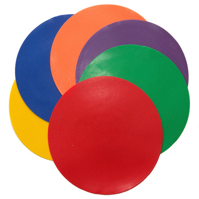 Ideal for teaching positional skills for sport and athletic activities. The spots can be used to designate court positions or mark distances. Each set comes with 6 brightly coloured spots, one of each colour: red, yellow, blue, green, orange and purple.