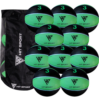 The Hit Sport Trainer Basketball (10 Pack with Carry Bag) | Size 3 (Green) are perfect training balls suitable for Outdoor/Indoor play in all types of conditions. These are made with rubber material which is durable even on cement courts.