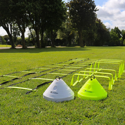 Sharpen up your speed work. A 4m ladder with sliding cross-sections to adjust stride patterns for all work-outs.