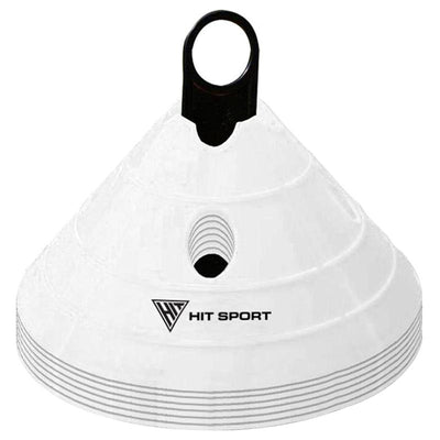 The Hit Sport White Saucer Cone Set is a training essential for clubs and schools. You can use this multipurpose cones set for drills, exercises, and agility tests. With extra holes strategically placed around the cone, you can combine them with boundary poles to create hurdles— giving your team that extra challenge during training!