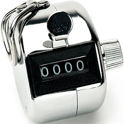 This tally counter is a simple means of counting anything from laps ran, fouls committed, shots on goal etc. with the simple click of a button, also you could use it for non-sport things like traffic surveys, warehouse inventories, meeting attendance and more. The chrome plated finish fits comfortably in your hand, thumb ring with instant reset knob. The contrast of white numbers on black background visually stands out.