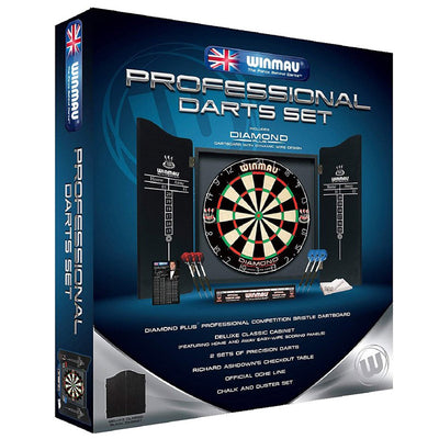 The Winmau Professional Darts Set is crafted for dedicated darts players, providing a complete setup that combines quality and convenience. This set includes a premium bristle dartboard, two sets of steel-tip darts, and a sleek black finish. Ideal for both serious practice and home entertainment, it includes all necessary fixings and instructions for easy setup.