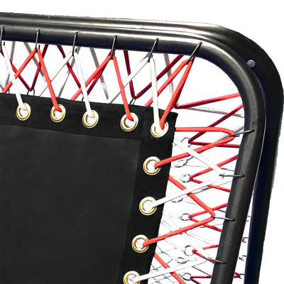 Its frame is made from 100% high-grade metal ensuring durability and sturdiness when in use. Woven elastic string intertwines between the frame and rebound surfaces to offer maximum bounce back which will last through the test of constant use. The metal bar between the two surfaces sets at different intervals to allow various heights of returned passes.