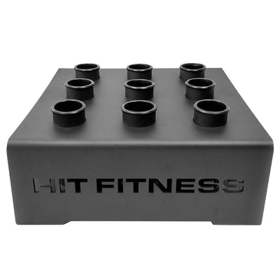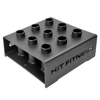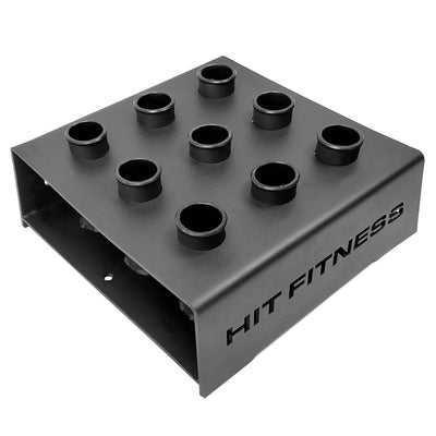 This rack can hold up to 9 Olympic Weight Bars. High Quality Black Powder Coating. Good for protecting bars without taking up much floor space.