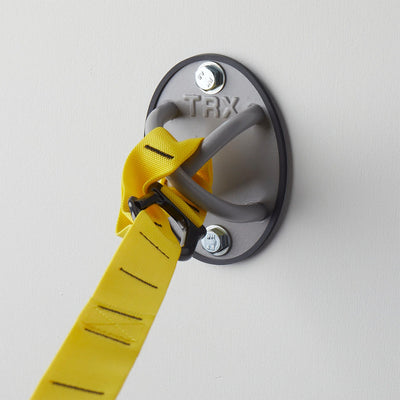 The TRX XMount is a permanent anchor point for suspension training, designed to be fixed to load-bearing wall studs or ceiling joists. It provides a stable, multi-point attachment for TRX straps and similar systems in indoor or outdoor environments.