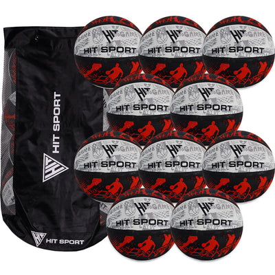 This Hit Sport Basketball (10 Pack with Carry Bag) | Size 7 (Red) delivers perfect training balls suitable for Outdoor/Indoor play in all types of conditions. These are made with rubber material which is durable even on cement courts.