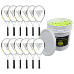 Use the Advantage Senior Tennis Racket to up your game at school or in the gym. The racket is 27" in length and has a two tone colour scheme, with an aluminium frame that boasts a fitted head protector and a soft PU (polyurethane) handle. For tennis coaches, the Tennis Coaching Set is invaluable and contains many pieces of sporting equipment that will help in assisting tennis athletes of any level. Comes with: six 19" racquets, six 21" racquets, one set of 25 markers, twelve low compression tennis balls, eight 9cm foam balls, a holdall and twelve super tournament tennis balls. This is the perfect discount tennis equipment set, as it contains many accessories that would cost much more if purchased separately.
