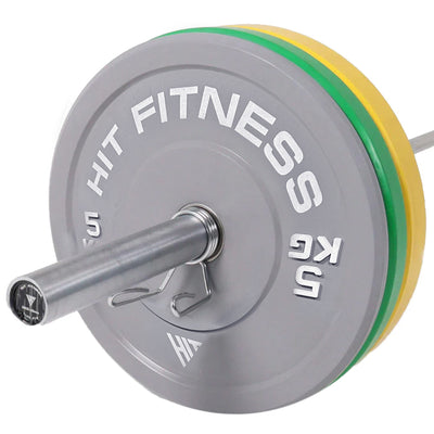 Hit Fitness Coloured Rubber Bumper Plates are Olympic weightlifting plates that are used primarily for resistance, fitness, strength, circuit, and hypertrophy training. HIT FITNESS bumper plates are made of 100% rubber. This allows heavy loads to be dropped safely onto platforms and gym floors without causing damage to flooring and reducing the amount of bouncing that occurs the following impact.