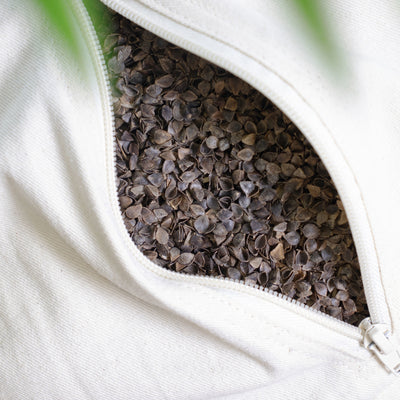 Filled with natural buckwheat hulls, the bolster moulds to the body while remaining firm. The filling can be added or removed to adjust height, weight, and firmness to suit individual practice needs.