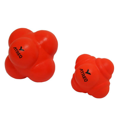 The six-sided Atreq reaction hard rubber ball is perfect for improving reaction time, hand eye co-ordination and foot speed. The path of the ball is not known until it hits the ground or wall. It has a compact design producing faster, more erratic bounces.