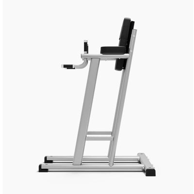 The Exigo Leg Raise / Dip Station is a dual use piece of equipment than can be used to perform dips and leg raises. The frame is designed at an angle to eliminate strain on the lower back and to provide an intense abdominal workout. It features 38mm rubber ribbed handles with caped aluminium ends, as well as high density foam elbow pads and high impact feet to keep the user stable and comfortable throughout exercise. This training station is made with 100x50x3mm Flat Sided Oval and is fully commercial with a lifetime warranty on the main frame.