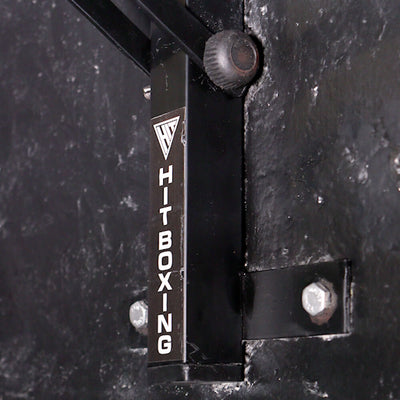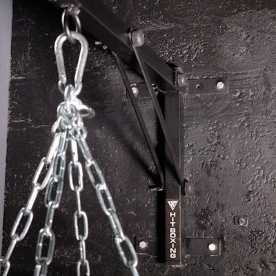 The Hit Boxing Folding Hook is a heavy-duty folding wall bracket that stands 24 inches from the wall and folds easily back in when not in use. The folding hook is made of iron and coated black. The hook is compatible with the Hit boxing and all other punch bags and must be connected to a solid wall or brick.