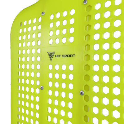 The fluorescent yellow colour ensures high visibility in all weather conditions, while the heavy-duty PVC material and moulded chest plate ensure durability against harsh weather and ball impacts. The four steel spikes at the bottom make it easy to insert into soft surfaces such as grass, and the underneath ground spikes provide stability.
