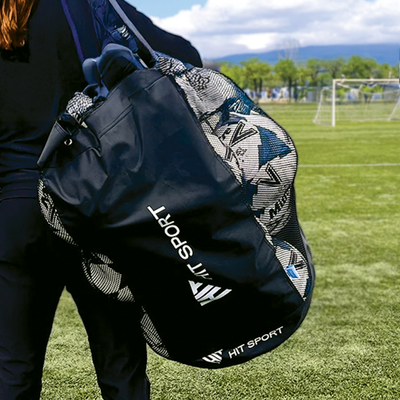 The design of the Hit Sport Heavy Duty Ball Bag is done with performance in mind. This bag will hold up against the punishment of being hauled to trainings and being stored in sheds. It will hold 12 balls comfortably and keeps everything inside with a drawstring cord. The nylon material is easy to wipe clean and won't absorb liquid. A small hole at the bottom of the bag for drainage ensures you don't bring rain home with you. This bag is topped off with mesh panels so that you can see inside and a handy adjustable shoulder strap. This solid design makes it perfect for any sport.